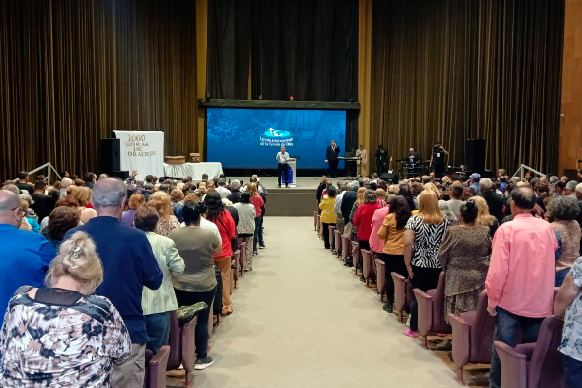 Missionário R. R. Soares prega para centenas de pessoas na sede da IIGD Argentina, em Buenos Aires, novembro de 2024– Imagem: IIGD Argentina/Arquivo